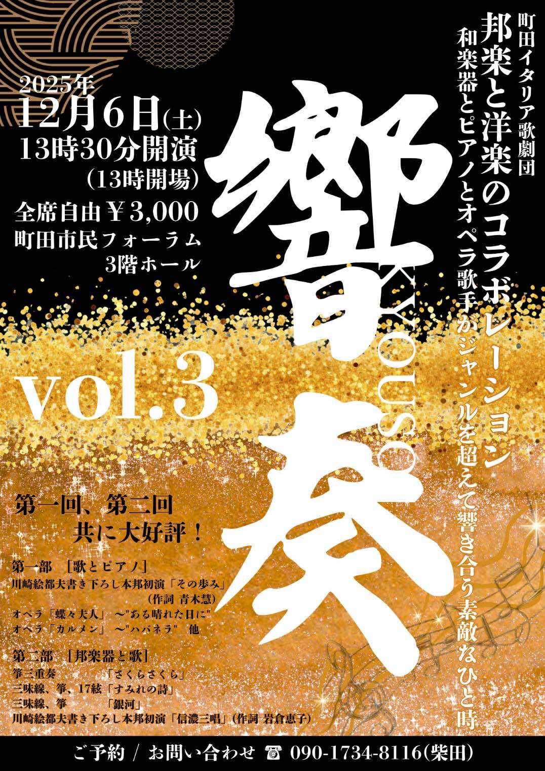 〈響奏Vol.3 邦楽と洋楽のコラボレーション〉のお知らせです。